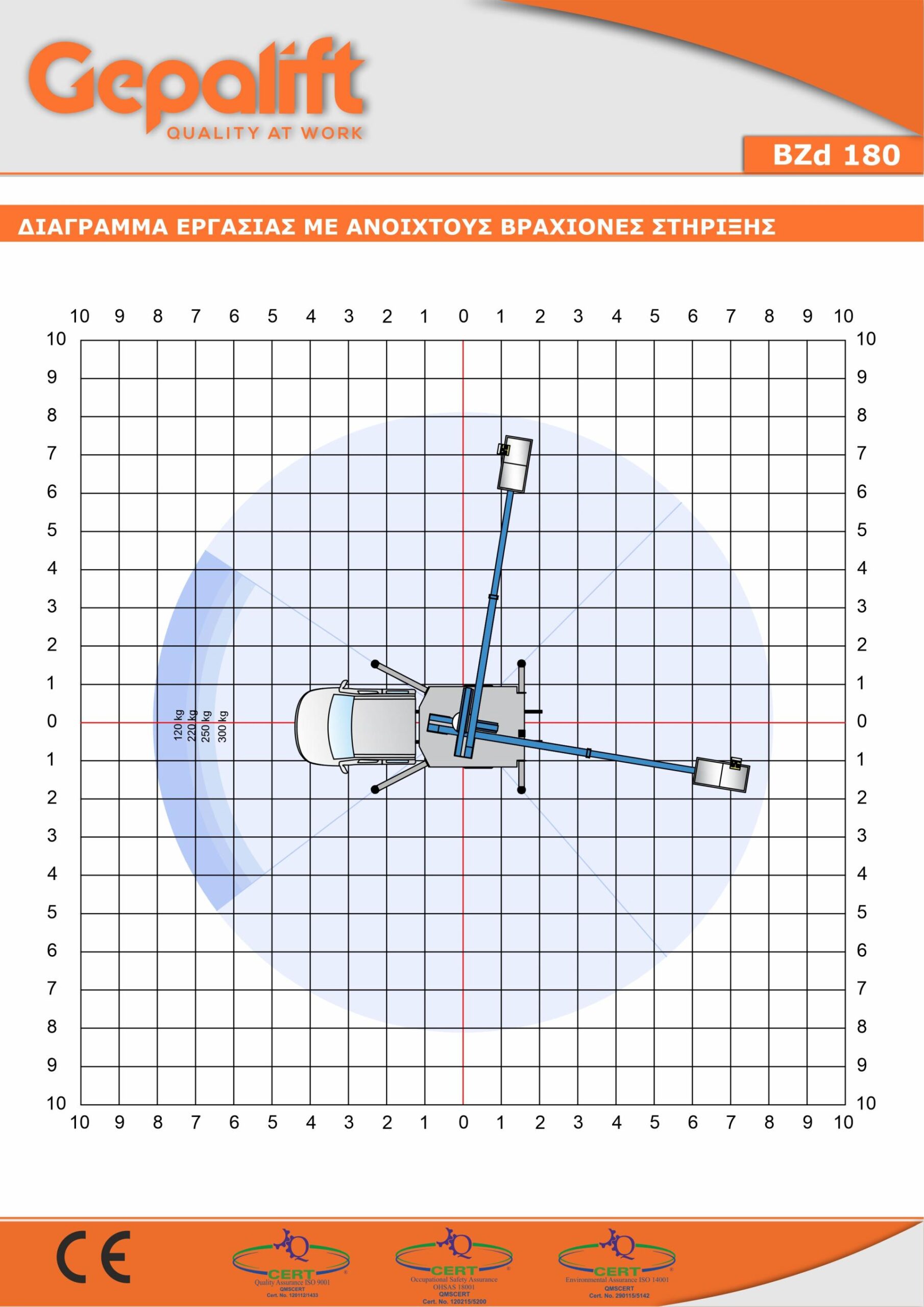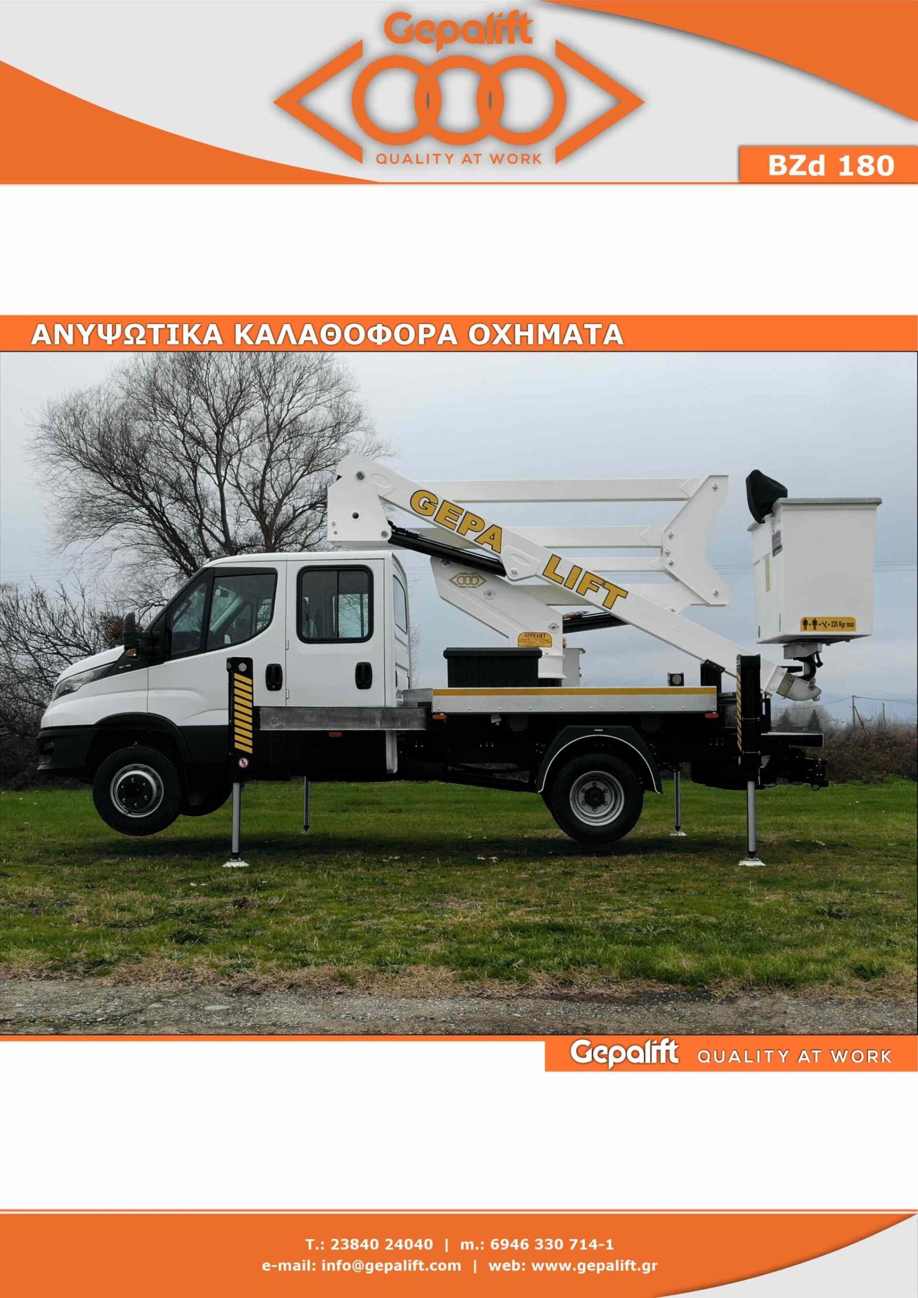 Το καλαθοφόρο ΒΖd 180 διατίθεται για εργασίες ύψους έως 18m. Είναι διπλού αρθρωτού και τηλεσκοπικού τύπου. Είναι η ιδανική λύση για αρκετούς και διαφορετικούς τύπους εργασιών. Ο σχεδιασμός και η ποιότητα των υλικών εγγυώνται την ομαλή λειτουργία και την ανθεκτικότητα στον χρόνο, ενώ παράλληλα παρέχει εμπιστοσύνη στον εκάστοτε χειριστή.